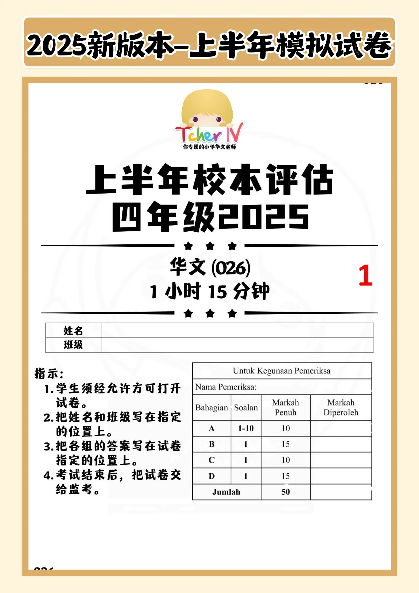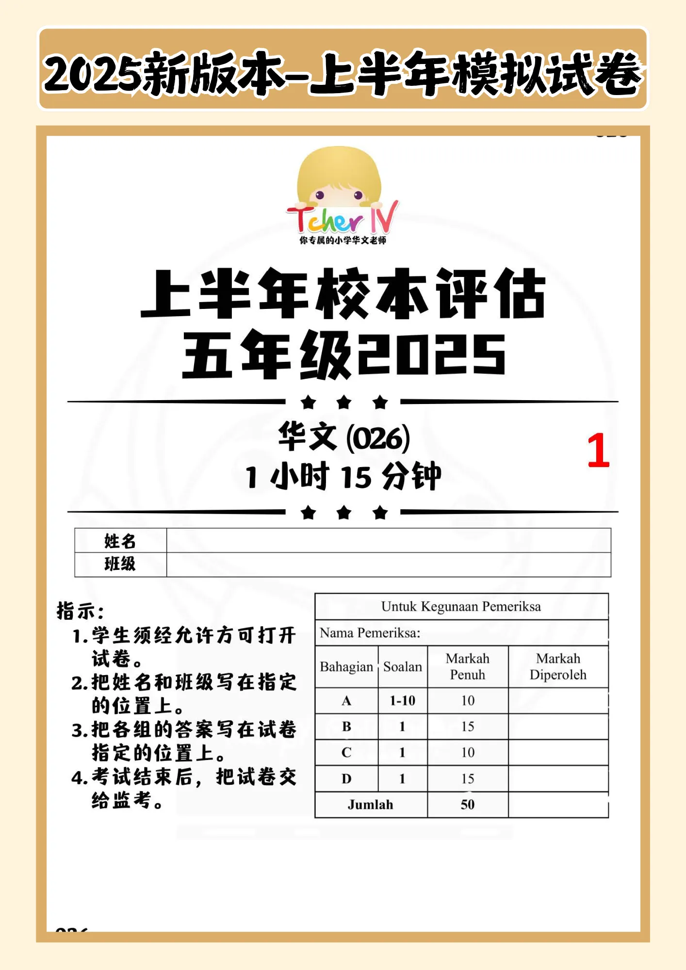 针对以上问题,IV老师联合多位经验丰富的华小教师,精心设计出符合最新课本大纲的2025年上半年华文模拟试卷,帮助孩子轻松把握考试重点,迅速提高学习效率。
