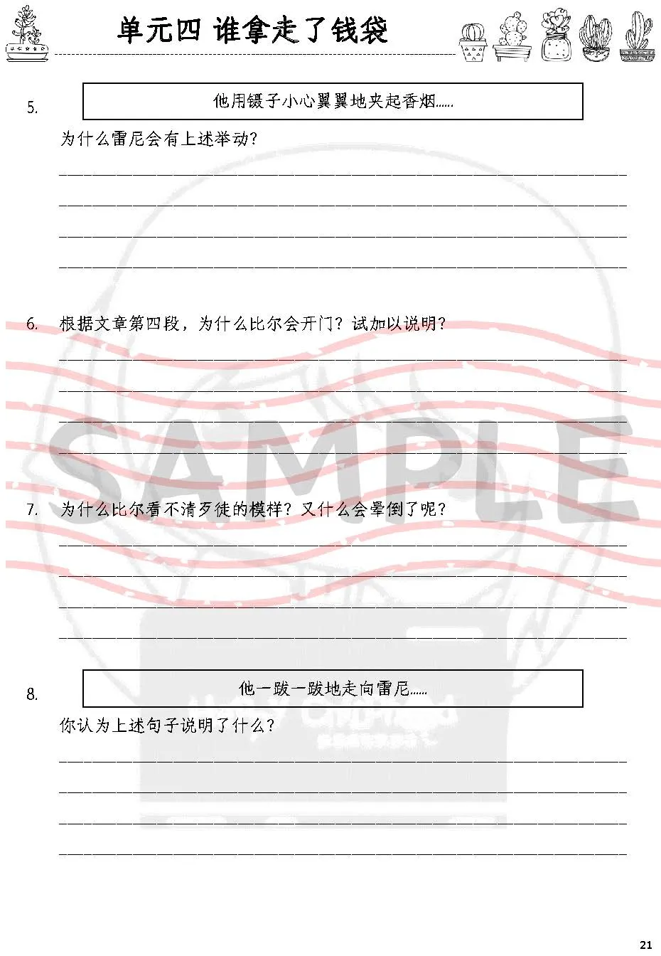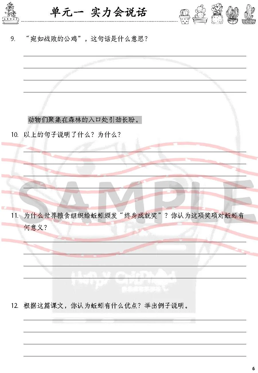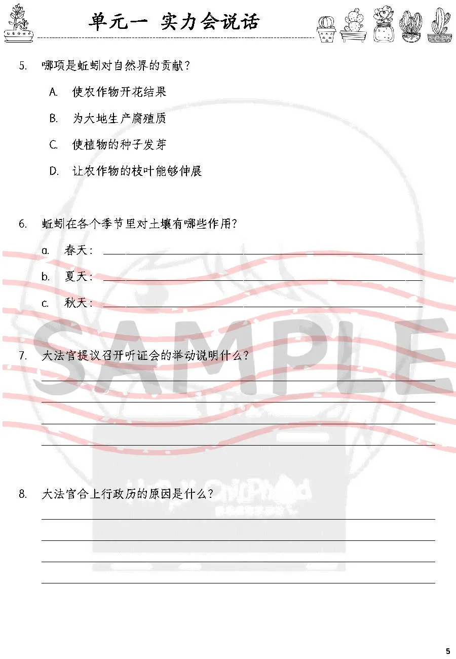 本教材的内容完全基于课文,严格遵循UASA(理解、应用、分析、评估)的教学原则,确保学生能够全面掌握课堂内容。教材覆盖了4/5/6年级的全部单元(单元1至20),每个单元都经过精心设计,以促进学生的高层次思维发展。