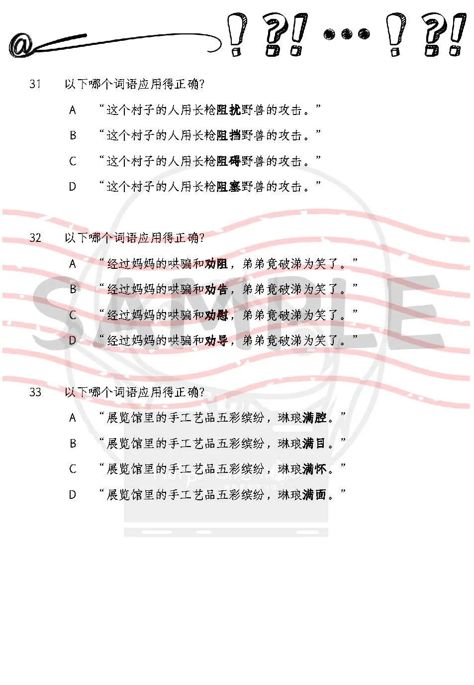 页面:每一份100题词语应用习题
