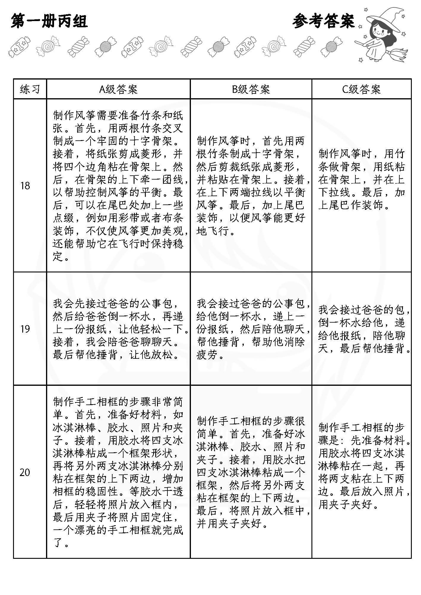 ✏每一篇备有三种不同得分的参考答案(A级、B级、C级)