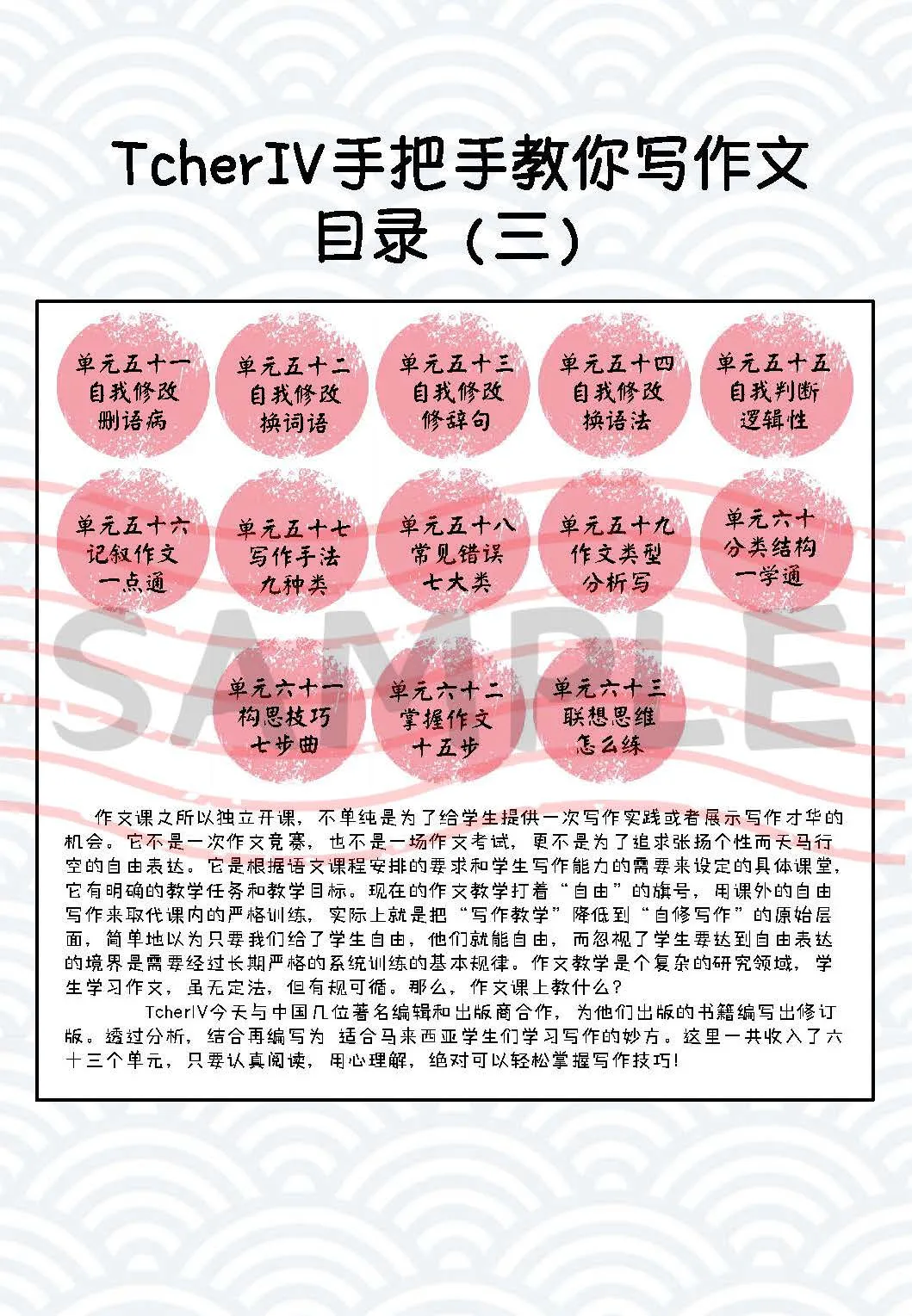 我们自豪地介绍《TcherIV手把手教你写作文:63个单元写作秘籍》,一本由经验丰富的教师精心编写,与中国顶尖编辑和在籍老师合作出版的书籍。这不仅仅是一本书,而是一把打开创意大门的钥匙,专为马来西亚的学生量身定制,旨在引导他们掌握写作的精髓。