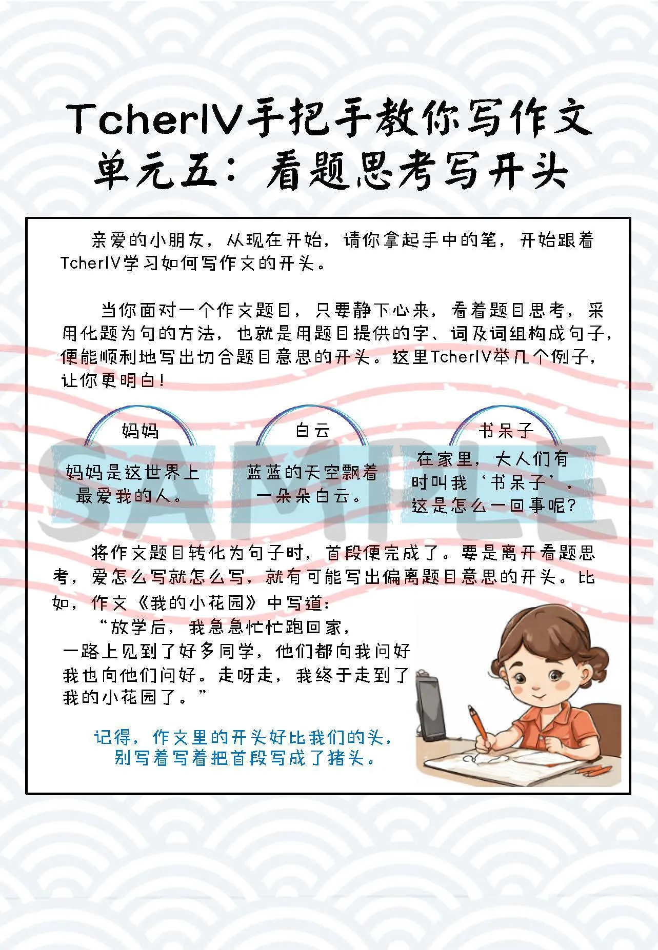 🌈 无论你是初学者还是希望提高写作技巧的学生,《TcherIV手把手教你写作文:63个单元写作秘籍》都将是你通往成功的阶梯。让我们一起踏上写作的旅程,解锁写作的无限可能,用文字构建你的世界!