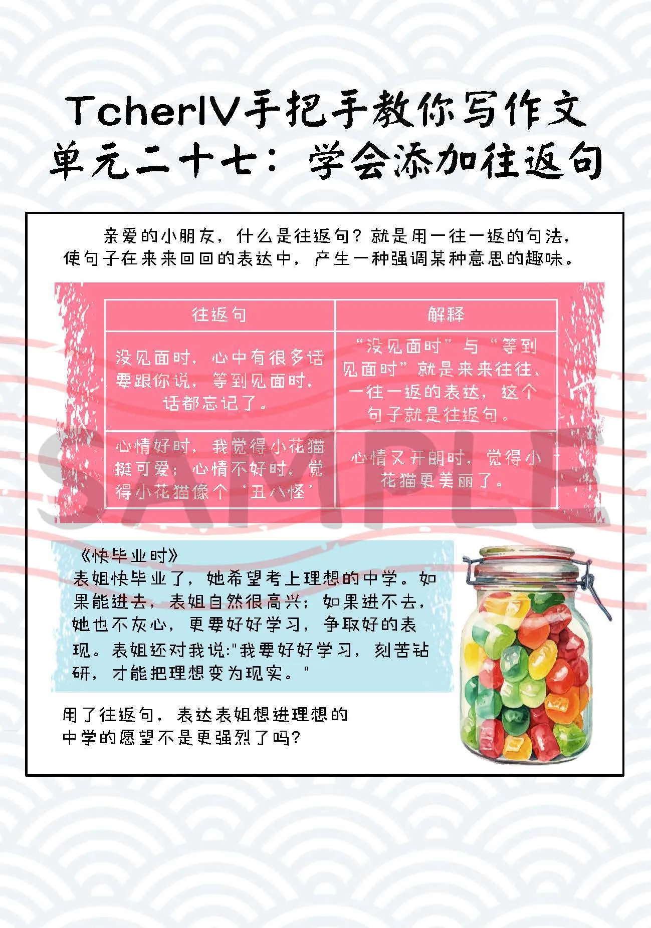 - 系统训练:63个精心设计的单元,覆盖从基础到高级的写作技巧,确保学生能够系统地学习和提升。